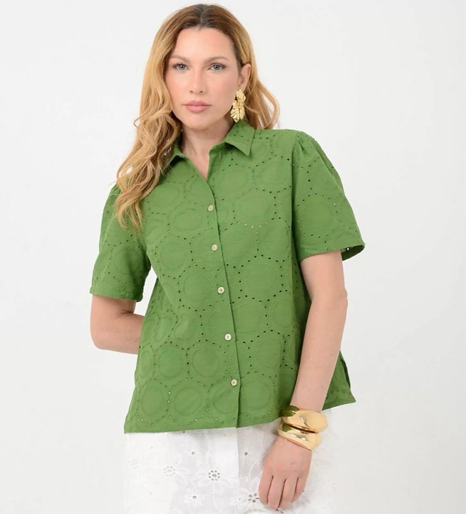 Uma camisa romântica e clássica confeccionada em algodão para você vestir elegância com conforto! A camisa Alexa é confecciona em Laise e garante um look sofisticado. Pode ser usada fechada ou toda aberta como terceira peça em cima de regatas ou vestidos. Linda, leve e ideal para qualquer ocasião.